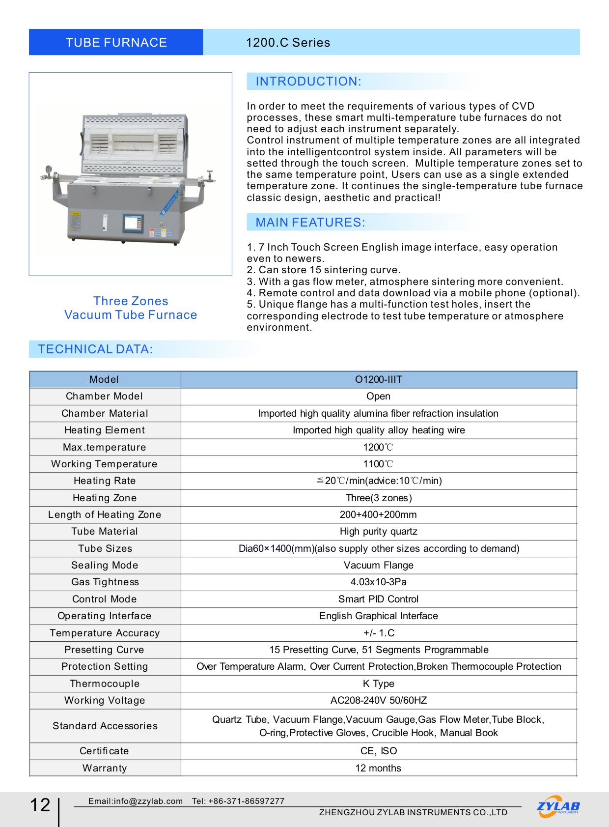 1200.C Three Zones Tube Furnace