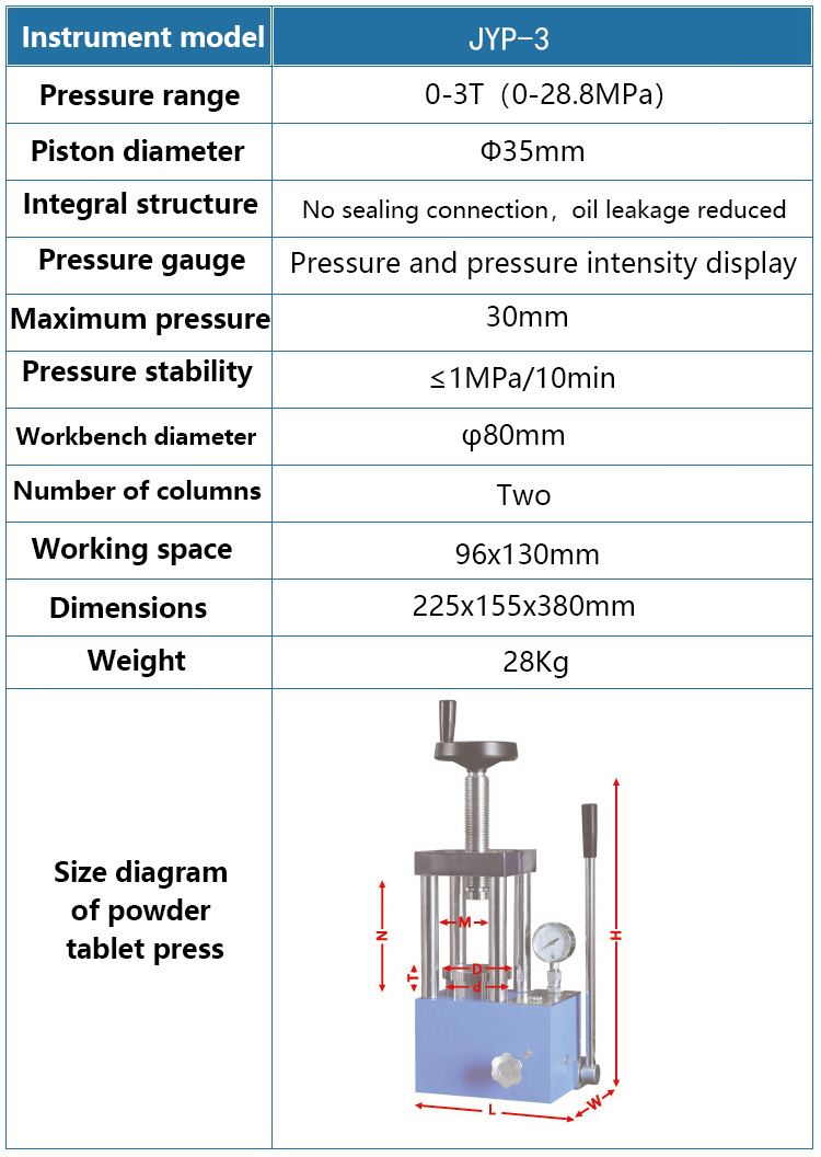 Specification of Lab Tablet Press Published 12/11/2023 at 750 × 1056 in Manual Powder Tablet Press Specification of Lab Tablet Press ← Previous Next →