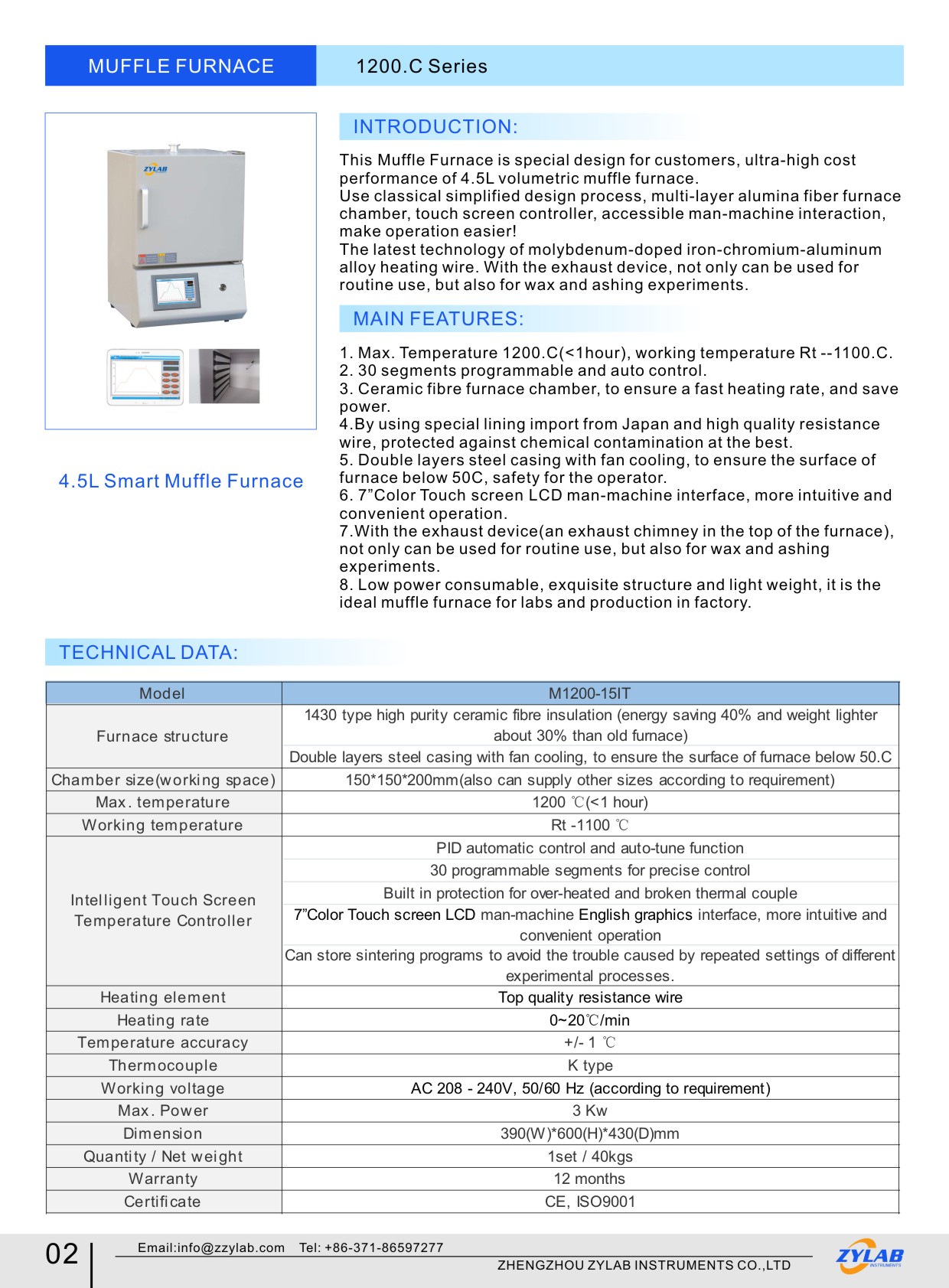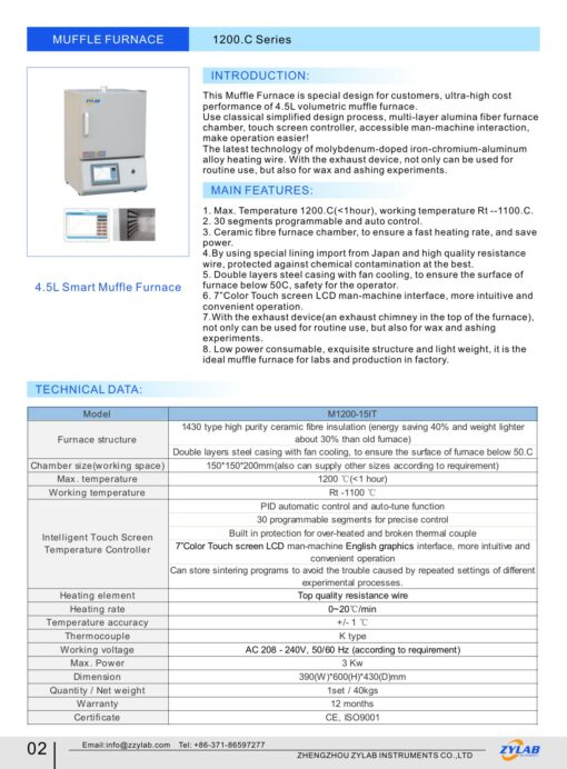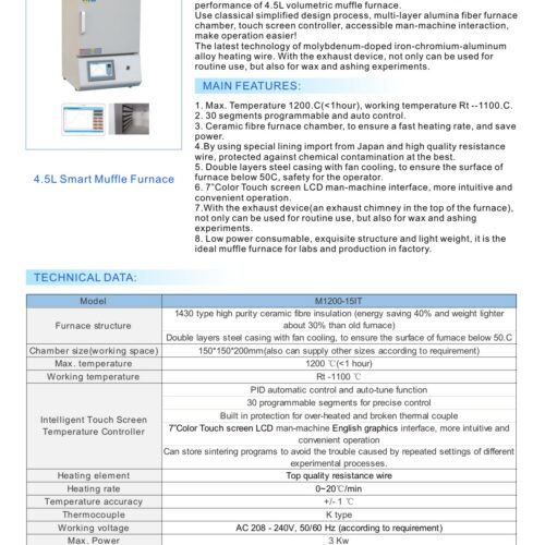 4.5L Smart 1200.C Muffle Furnace