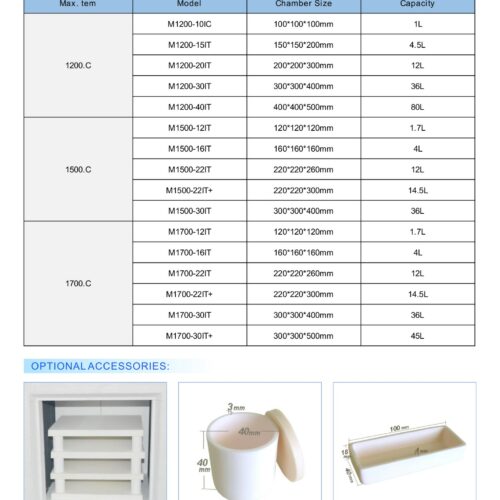 Big capacity 36L 1700.C muffle furnace adopts durable compact vertical structure, without auxiliary table, convenient operation.