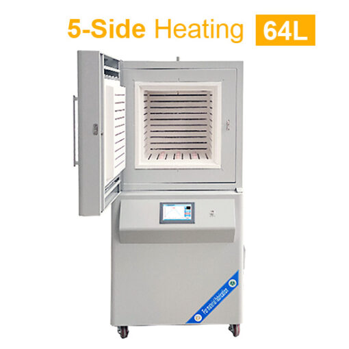 ZYLAB 5-Side Heating Muffle Furnace is a high-uniformity heat treatment furnace designed for demanding thermal processing applications. Featuring an advanced 5-face heating system—including front, back, left, right, and bottom surfaces—it ensures exceptional temperature uniformity across a large 64-liter chamber.
