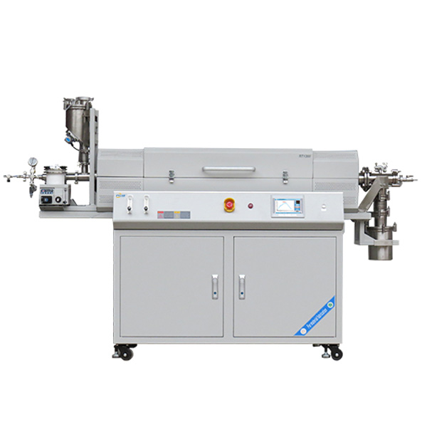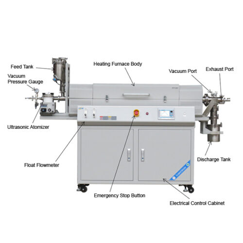 The Automatic Rotating Furnace system includes a sintering system, electrical control system, vacuum system, lifting system, inlet and outlet gas system, rotating seal system, and feeding system. It is equipped with a self-developed atomization device that provides stable liquid reactants for the experiment.