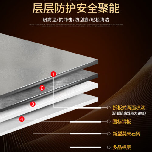 5. Five layer safety energy insulation and scald proof kiln body (silicon molybdenum wire +polycrystalline cotton layer +new mullite brick +high-quality national standard steel plate + folded type plate paint on both sides for rust prevention and corrosion resistance). External scald prevention, internal temperature locking, reduce heat emission, lower the temperature of the kiln body, and heat insulation is not hot. During firing, the temperature of the whole room does not rise more than 2. C, safe and secure. And it is easy cleaning.