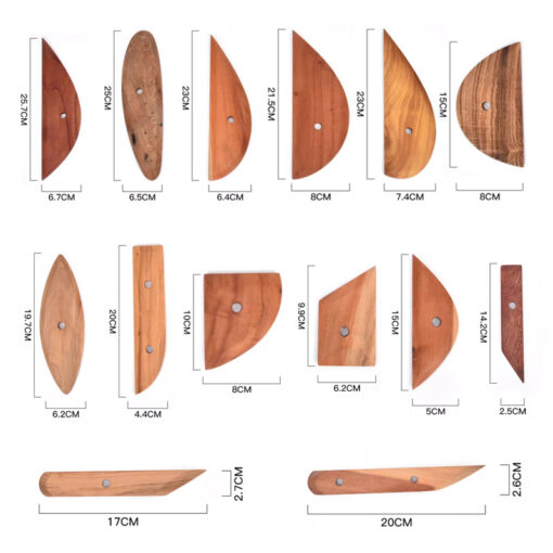 Ceramic Wooden Scrapers: Crafted from solid wood, each scraper enables the creation of distinct shapes for ceramic vessels. Meticulously selected materials offer a comprehensive range, catering to all your crafting needs.