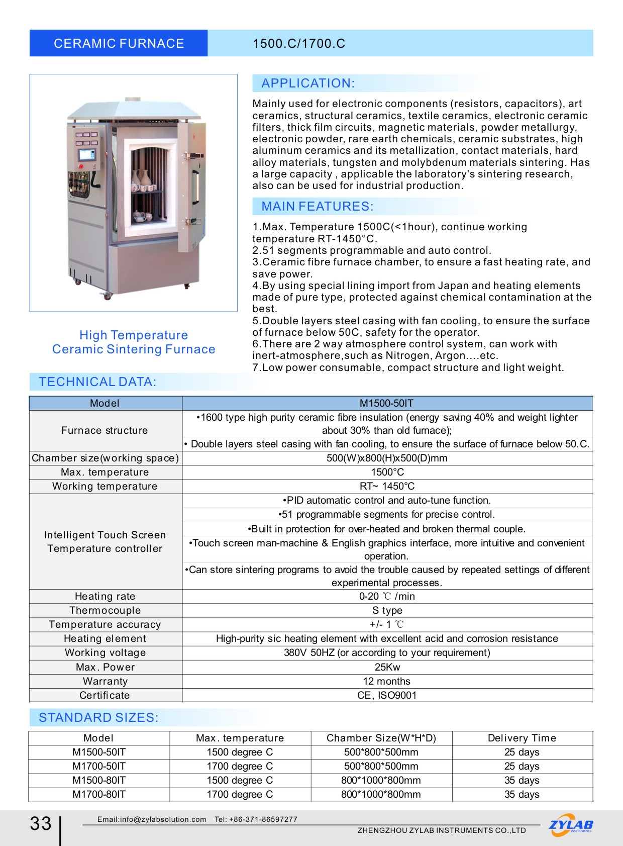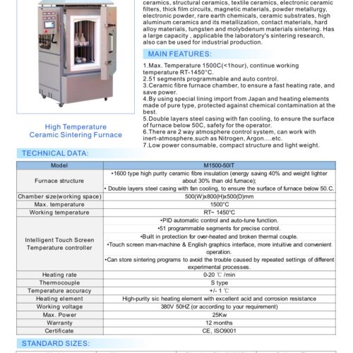 | M1500-50IT | 1500 degree C | 500*800*500mm | 25 days |