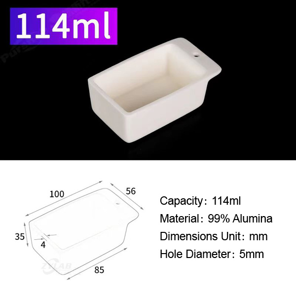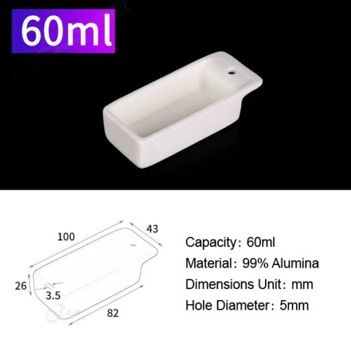 The rectangular design ensures uniform heat distribution during the heating process, while the hole at the back allows for easy insertion and removal of materials during experiments.