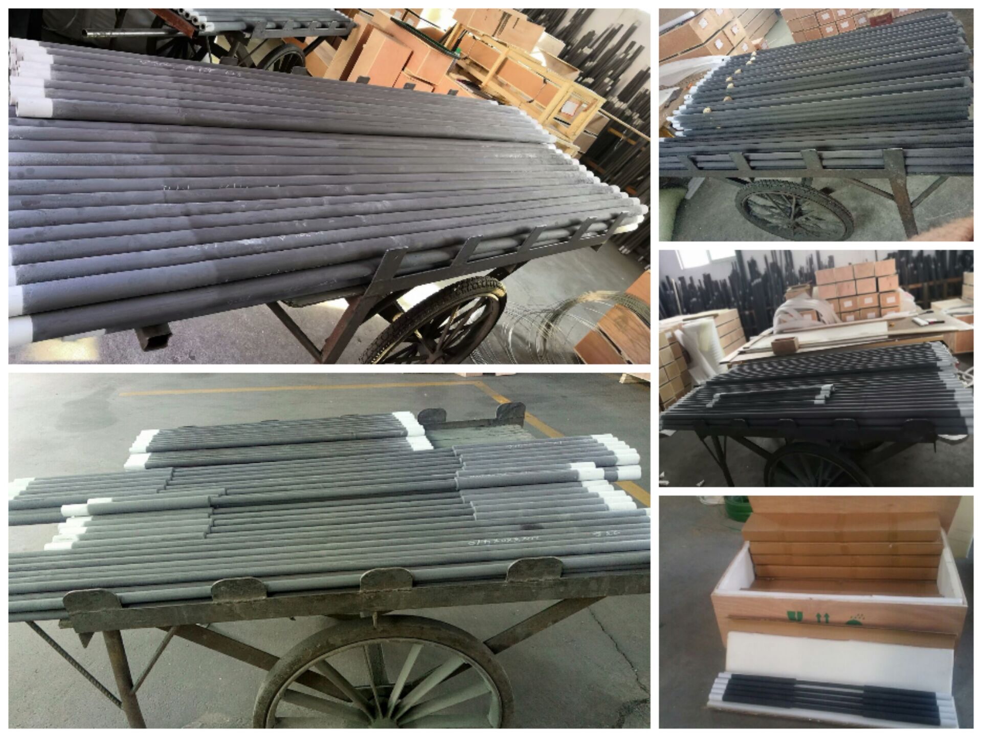 SiC Heating Element is one type of ceramic heating elements, which use six-party high purity green SiC powder as the main raw material. Silicon is recrystallized under 2200 ℃ high temperature to form finished materials. The using temperatures up to 1450 °C under oxidation atmosphere, and constant working life up to 2000 hours. It is widely used in various high temperature electric furnaces and other electric heating devices, such as in the industries of magnet, ceramics, powder metallurgy, glass, metallurgy and machinery etc.