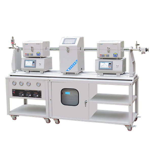 The Dual Furnace Sliding PECVD system features a dual-temperature zone tube furnace, incorporating a 500W RF generator, two movable independent sintering furnaces, a high-precision mass flow mixing system, and a stable anti-backlash vacuum system. It is designed for the growth of nanowires and the fabrication of various thin films using the CVD method.