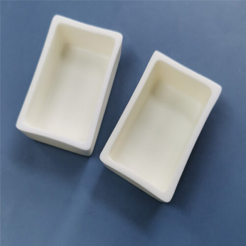 Square alumina boats are crucibles used for high-temperature melting of metals, ceramics, or other materials. They are made of alumina (aluminum oxide) material, which exhibits excellent properties of high temperature resistance, corrosion resistance, and wear resistance.