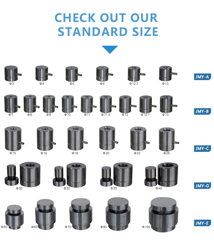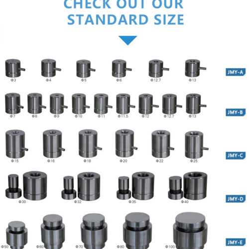 Cylindrical split molds with easy demolding belong to laboratory consumables, typically comprising a mold base, mold cores (three petals), mold sleeve, mold pressure rod, mold spacer, and demolding sleeve. They can be customized in various specifications, with a delivery time ranging from 3 to 20 days. Common mold sizes range from Φ3 to Φ40mm, with specifications including Φ3, Φ5, Φ6, Φ7, Φ8, Φ10, Φ12, Φ12.7, Φ13, Φ15, Φ18, Φ20, Φ25, Φ30, Φ32, Φ35, Φ40, Φ50,Φ60,Φ70,Φ80, Φ90, Φ100mm, etc.
