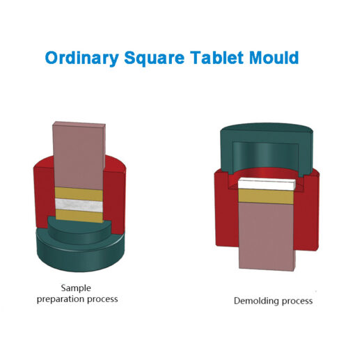 The regular square mold is commonly found in laboratories for compressing powder materials and preparing rectangular, square, triangular, or other-shaped thin slices, cylinders, etc. It needs to be used with a tablet press and is capable of pressing various powder materials such as potassium bromide (KBr), sodium chloride (NaCl), silicon dioxide (SiO₂), zirconium oxide (ZrO2), aluminum oxide (Al₂O₃), and others into solid shapes for research. It has been widely applied in various fields, including research, teaching, catalysis, testing, pharmaceuticals, chemical engineering, and the development of new materials.
