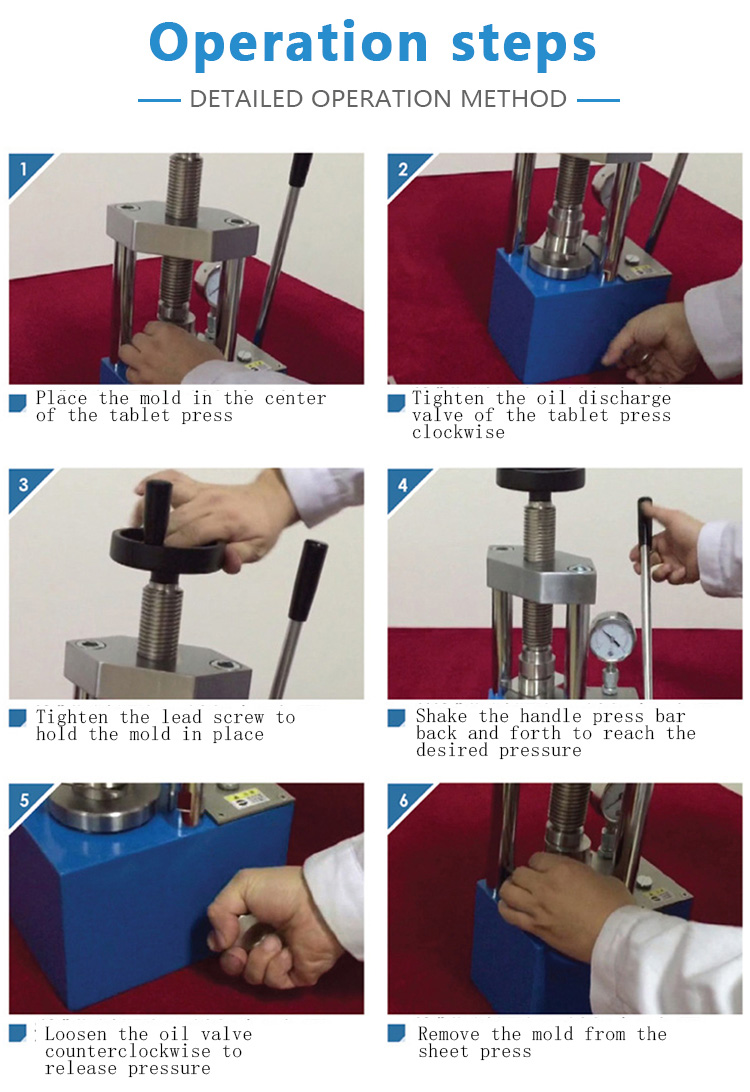 Manual Powder Tablet Press is widely used in various fields such as scientific research, teaching, testing, catalysis, pharmaceuticals, chemical engineering, and the development of new materials.