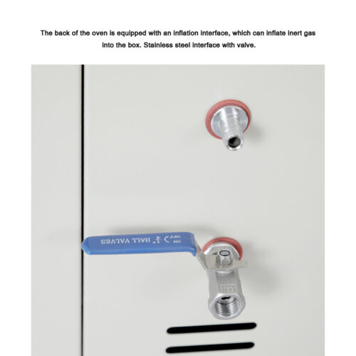 4. The back of the oven is equipped with an inflation interface, which can inflate inert gas into the box. Stainless steel interface with valve.