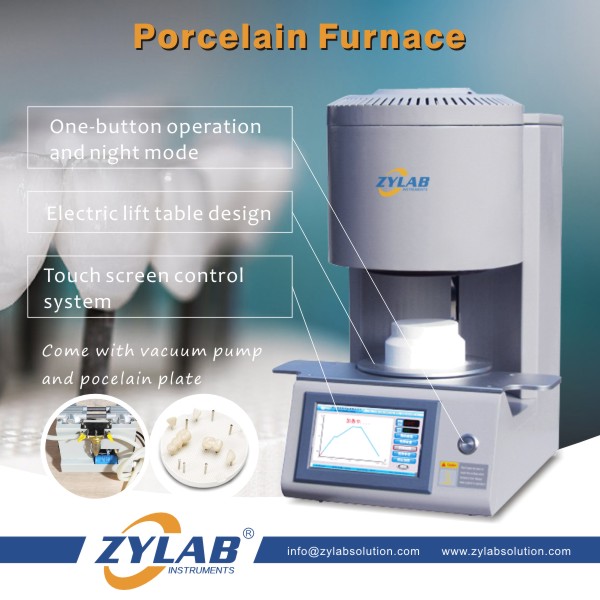 ZYLAB Vacuum Porcelain Furnace is special designed for dental lab. It is an ideal dental equipment in dental lab for ceramic, nichrome, Ti-Cr alloy, stainless, zirconia dental crown and dental bridge etc pre-heating, roasting , sintering, glazing etc heat treatment.
